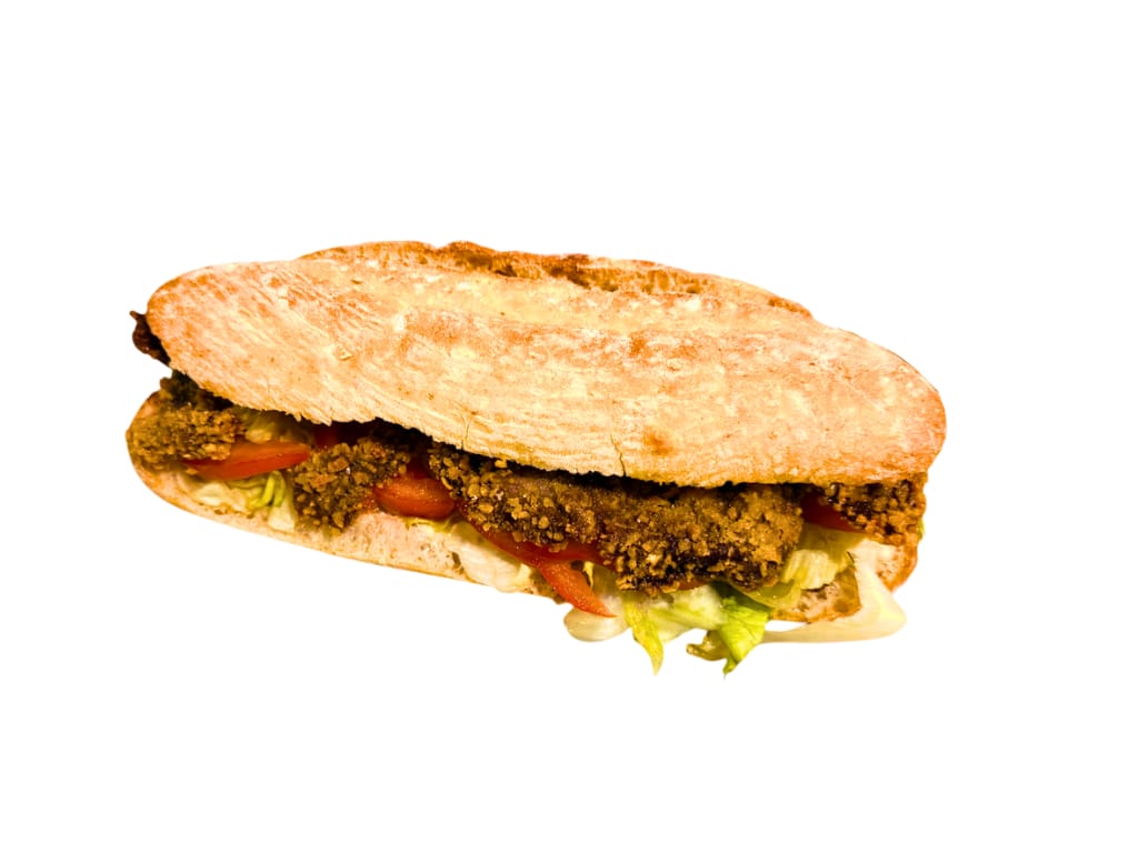 Mayonesa, lechuga, tomate y ternera rebozada.